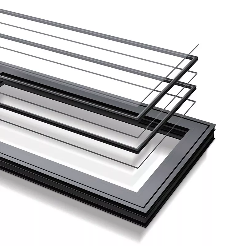 Maximálna konfigurácia sú tri vrstvy dutého skla, ktoré je vyplnené inertným plynom, čo účinne znižuje prenos tepla a hluku cez sklo a dosahuje vysokú tepelnú izoláciu a efekty vysokej zvukovej izolácie.